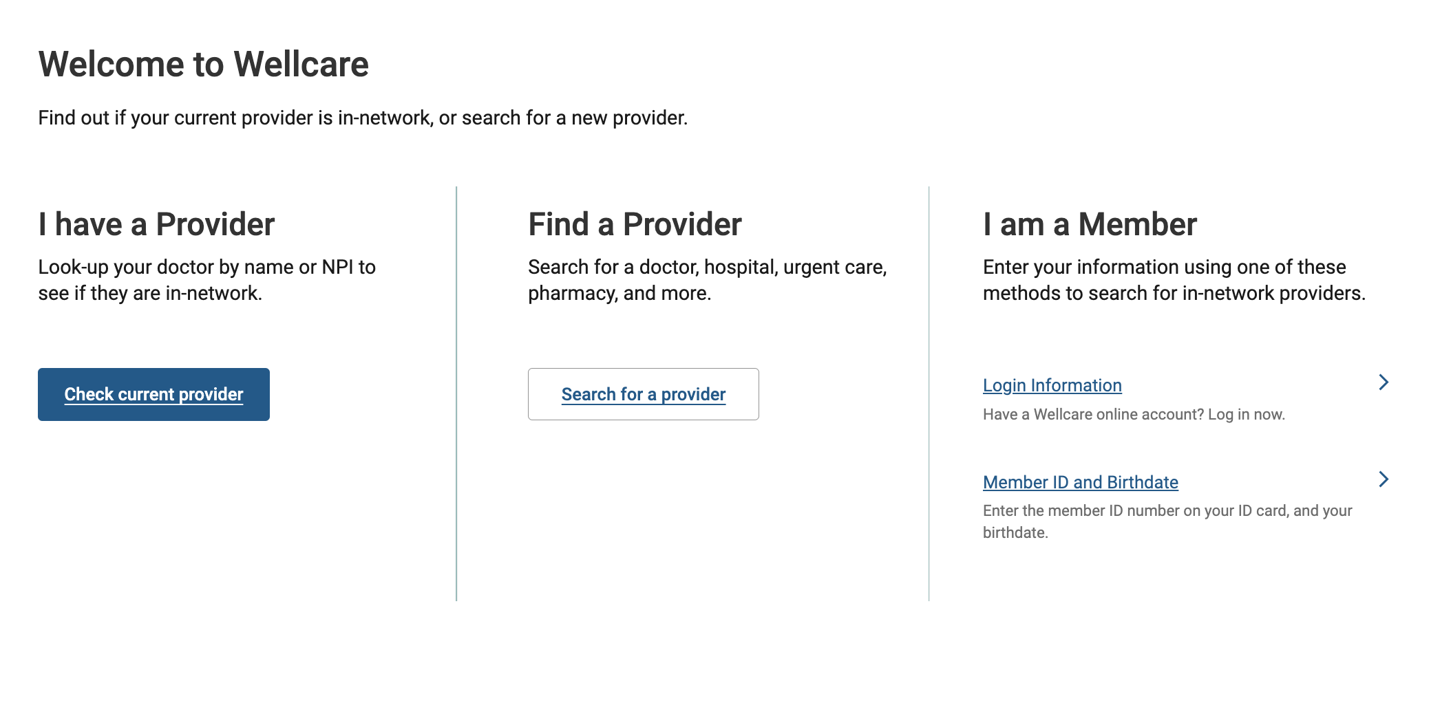 - Click the Find a Provider link or type "wellcarefindaprovider.com" into your internet browser