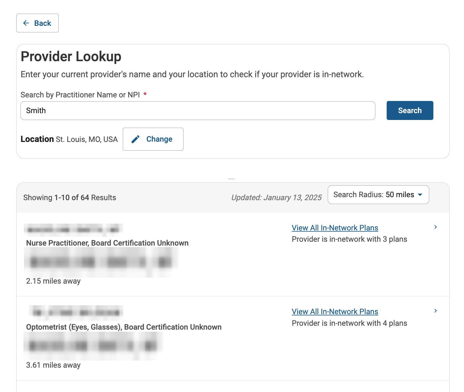 Click this option if you already have a preferred doctor and want to check if they are in-network.